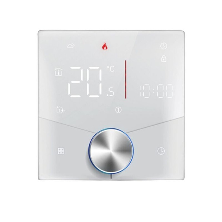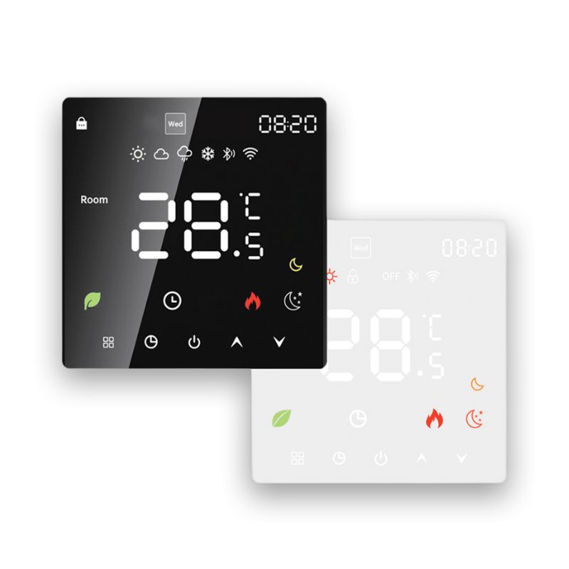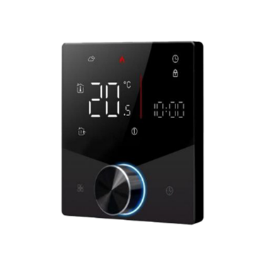 کلید ترموستاتیک هوشمند در دو مدل ولوم دار و فول تاچ عرضه می گردد که با قابلیت کنترل دما و دور فن کوئل و کنترل سیستم گرمایش از کف ، به شما این امکان را می دهد تا کنترل سیستم سرمایش و گرمایش خانه خود را در هر مکانی در دست خود بگیرید و خانه خود را در دمای دلخواه قرار دهید ،همچنین با قابلیت سناریو پذیری و حالت خودکار می توانید سناریو های دلخواه خود را به صورت اتوماتیک به اجرا در بیاورید.